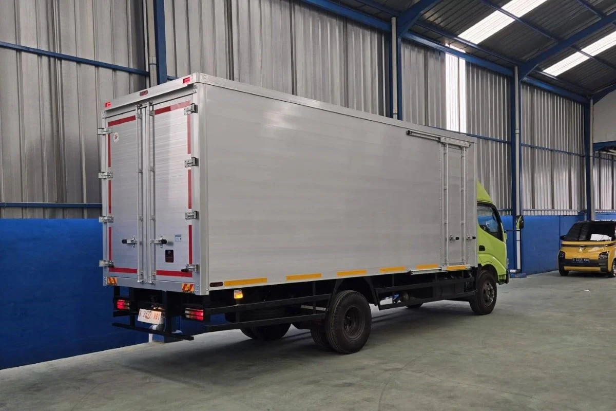 Truk Fuso, seperti model Fighter atau Canter, unggul dalam mengangkut barang berat dan besar yang sering ditemui di Surabaya. Dengan bak panjang hingga 6 meter dan volume muat mencapai 20-30 meter kubik, Fuso mampu menampung pallet semen, besi beton, atau peralatan konstruksi tanpa masalah. Di kota dengan lalu lintas pelabuhan yang ramai, truk ini memiliki pembatas yang kokoh dan suspensi kuat yang menjaga kestabilan bahkan di jalan berlubang.